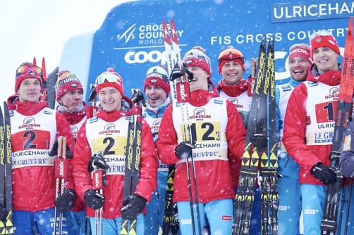 Александр Бессмертных в составе сборной России завоевал золотую медаль Кубка мира по лыжным гонкам
