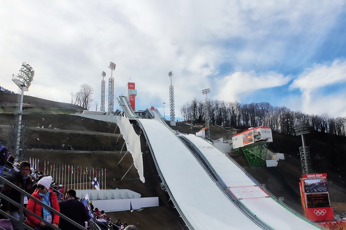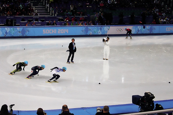 Болеть за наших нам помогали два российских флага с золотой, как олимпийская победа, надписью «КУЗБАСС». Если вы внимательно смотрели телетрансляции, то видели его вы не раз. А побывали мы на суперсовременных «Санках» (где, надеемся, внесли вклад в попытку россиянки Екатерины Батуриной вклиниться в борьбу за «призы» женских одиночных саней, а также переживали за бобслейный экипаж кемеровчанки Надежды Сергеевой), на «Русских горках» (где во время прыжков лыжников-двоеборцев радовались успеху Евгения Климова и недоумевали по поводу его фактически последнего итогового места), в «Айсберге» (принимали участие в организации сумасшедшей поддержки Владимира Григорьева и Виктора Ана в четвертьфинальных забегах на 1000 м: оба стали победителями в финале, и мужской сборной России, которая в нашем присутствии вышла в финал эстафеты на 5000 м), в «Ледяном кубе» (в отсутствие российской команды мы здесь ни за кого не болели, зато внимательно изучали правила игры в кёрлинг: нас уже можно назвать экспертами, а заодно наблюдали, как одна, как оказалось в дальнейшем, из сильнейших женских команд – сборная Канады – методично разбиралась с датчанками на ближайшей к нам дорожке), в «Шайбе» (здесь мы были трижды: в первый раз наш флаг праздновал победу финской сборной над норвежской рядом с флагом финских болельщиков, во второй – помогали реабилитироваться женской хоккейной сборной России после четвертьфтинального поражения от швейцарок в матче за 5-8-е против японок, в третьей – стали свидетелями полуфинального матча женских команд), в «Розе Хутор» (возможно, наши мысли о том, что на месте Елены Яковишиной могла бы быть новокузнечанка Елена Простева, помогли россиянке не упасть на коварной дистанции женского супергиганта, где попадали полтора десятка горнолыжниц из группы сильнейших, а также помогли достойно откатать своё в параллельном слаломе райдерам из Таштагола Станиславу Деткову, Валерию Колегову и Наталье Соболевой). Чтобы выполнить свою миссию, посетил наш флаг и другие соревнования. Видел кузбасский флаг, к примеру, на старте «пятнашки» берёзовский лыжник Александр Бессмертных…