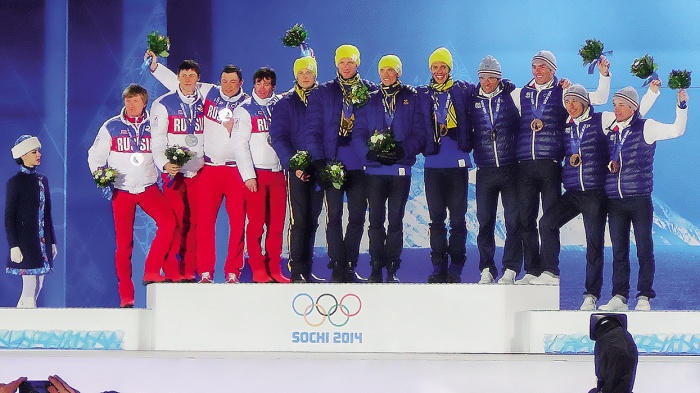 Товарищи по команде Александр Легков и Максим Вылегжанин поддержали атакующий порыв Александра Бессмертных. Финишировала сборная России на втором месте, уступив лишь шведам, чуть более стабильно проведшим гонку.