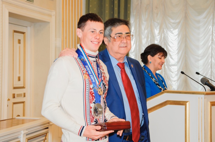 Участники зимней Олимпиады в Сочи Станислав Детков, Валерий Колегов, Надежда Сергеева и Наталья Соболева получили памятные дипломы и денежную премию в размере 200 тыс. рублей каждый. Тренеры участников Олимпиады в Сочи получили по 100 тыс. рублей.