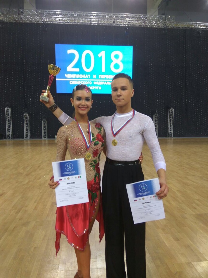 В первенстве Сибирского федерального округа среди юношей и девушек (14-15 лет) по европейской программе танцев на втором месте пара Завьялов Илья, 2003 года рождения, 2 разряд – Перевозчикова Арина, 2003 года рождения, 2 разряд из ТСК «Сибирский Стиль», город Новокузнецк. Тренеры Якимова Злата Павловна и Недопекин Данил Анатольевич.