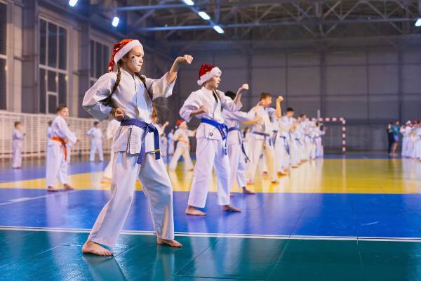 В преддверии праздника, занимающиеся отделения каратэ спортивной школы им. Б.В. Непомнящего Гурьевского муниципального района и любители каратэ выполняют техническую программу данного вида спорта, нанося количество ударов соответствующее числу наступающего Нового года.