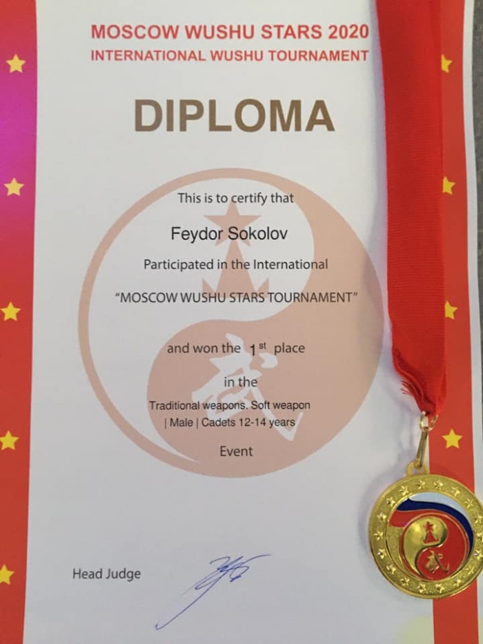 I место в дисциплине кунгфу – традиционное ушу жуаньбин, также III место в дисциплине кунгфу-традиционное ушу цюаньшу занял Федор Соколов. Спортсмен тренируется в Кемерове под руководством Алексея Дегтярева и уже имеет первый спортивный разряд.
