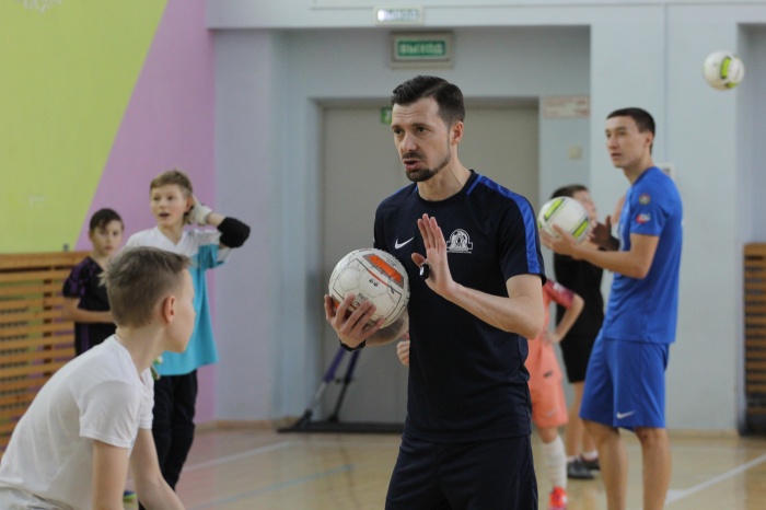 Мастер-класс для футболистов-школьников провел главный тренер кемеровской команды «Корпорация АСИ» Алексей Кудлай, а помогали ему действующие игроки команды Николай Ускоев и Алексей Горелов.