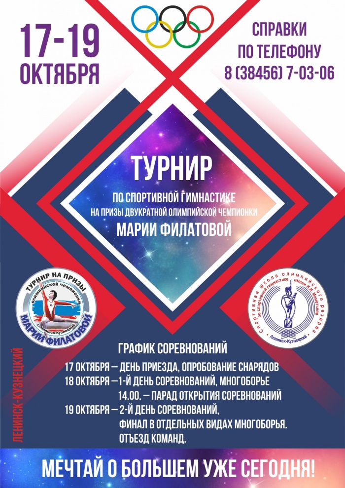 С 17 по 19 октября в ГБФСУ КО «Спортивная школа олимпийского резерва по спортивной гимнастике имени И.И. Маметьева» города Ленинска-Кузнецкого вот уже в третий раз состоятся областные соревнования по спортивной гимнастике на призы двукратной олимпийской чемпионки Марии Филатовой, которые станут отличной стартовой площадкой для спортсменов, делающих первые шаги в мир большой гимнастики.