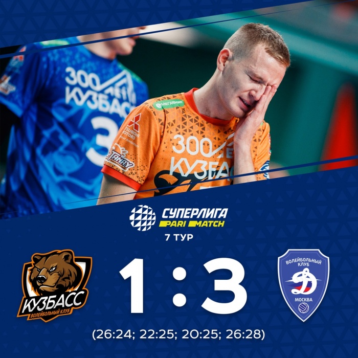 1:3 – кемеровский «Кузбасс» потерпел второе поражение в регулярном чемпионате страны. Самым результативным игроком матча в составе «Кузбасса» стал диагональный Иван Зайцев, набравший матч 20 очков.