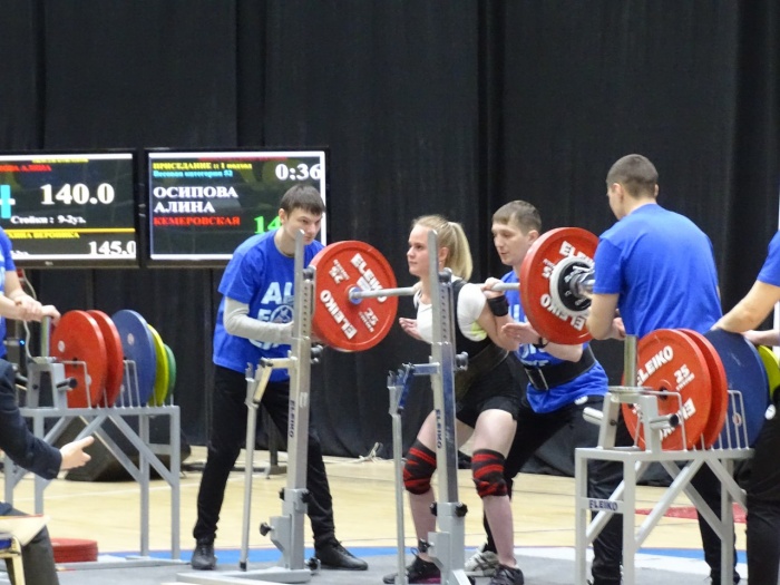 3 место – Осипова Алина (2000 года рождения, кандидат в мастера спорта, город Анжеро-Судженск), в весовой категории до 52 кг, сумма троеборья - 372,5 кг. Тренер Баталов Виталий Владимирович;