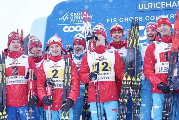 Александр Бессмертных в составе сборной России завоевал золотую медаль Кубка мира по лыжным гонкам