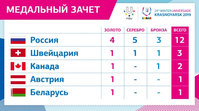 Сегодня, 3 марта, во второй день после официального открытия XXIX Всемирной Зимней универсиады-2019, российские спортсмены заняли лидирующее место в медальном зачёте.
