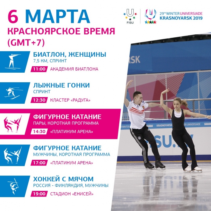 Также, 6 марта на Зимней универсиаде-2019 дебютируют фигуристы!