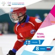 Вечернюю программу игрового дня на стадионе «Енисей» закрывал матч по хоккею с мячом Россия – Финляндия. Хозяева льда всю игру провели с позиции силы: атаковали, заставляя финнов трудиться в обороне. Результат матча 8:1 (3:0).